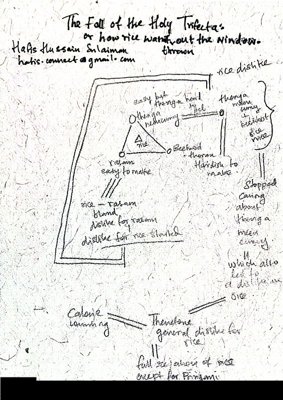 And then they kind of weaned away from all of that, and they stopped caring, because by now, I'm in my 9th grade and all that, and they're like, go eat your own stuff. So that is how the pipeline was coming. And to combine with this, my slow hatred for rice is coming in because of rasam.